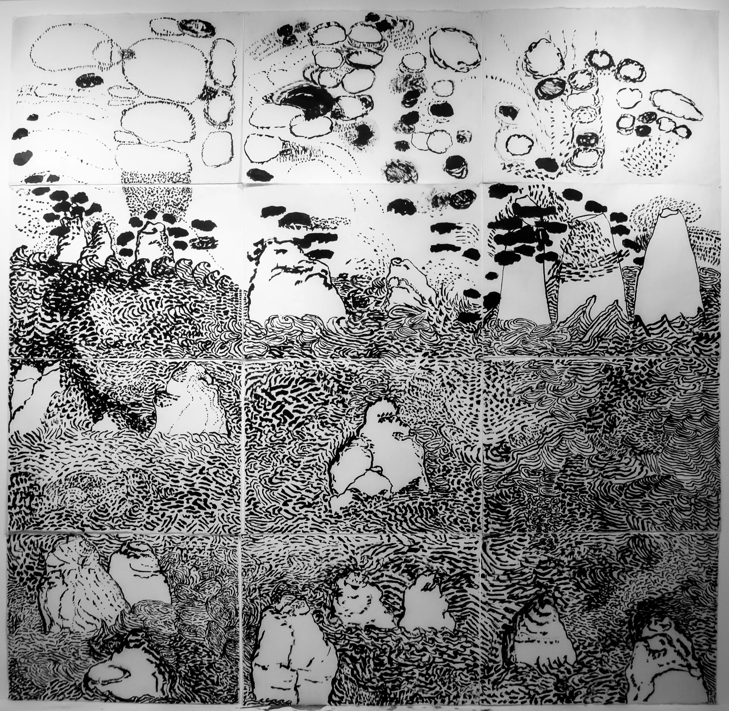 Fuji, Completed work, sumi ink on rice paper, twelve sheets each 21" x 29.5"